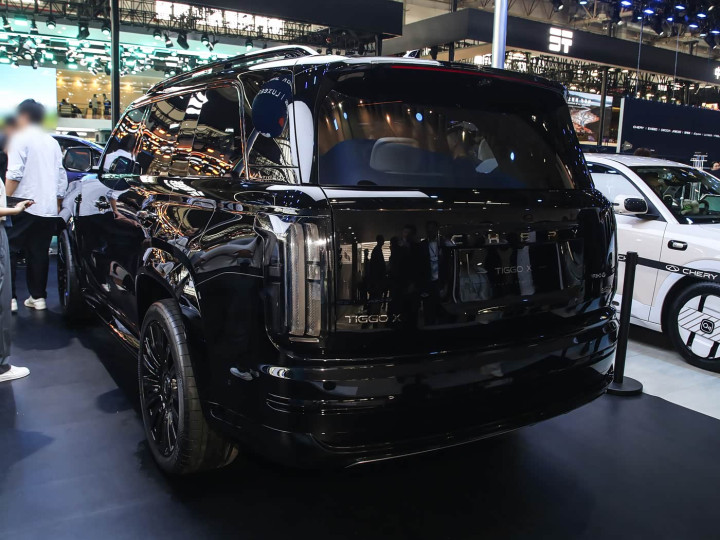 再来看车身侧面部分,侧面是瑞虎 X 的气场核心,5320×2010×1820mm车身搭配3120mm 超长轴距,短前后悬设计打造黄金比例,视觉修长挺拔,三条平直腰线贯穿车身,上腰线连接头尾灯组,中腰线硬朗利落,下腰线内凹营造光影层次,搭配悬浮式车顶与黑色车窗边框,弱化车身高度,增添优雅动感。机械式车门把手复古硬派,与车身齐平;车门下方内凹式设计,搭配大尺寸镀铬饰条,提升精致度。轮拱与侧裙采用黑色防刮材质,强化越野气息;车顶线条平直延伸,保障第三排头部空间,平衡硬派姿态与实用空间。