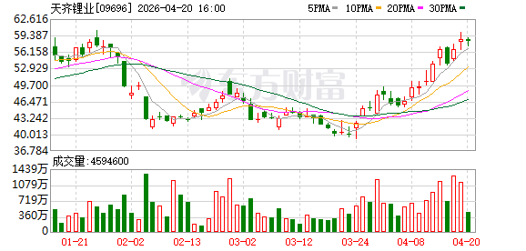 4月20日晚间,天齐锂业股份有限公司(简称“天齐锂业”)披露2026年第一季度业绩预告。报告期内,公司预计实现归属于上市公司股东的净利润17亿元至20亿元,同比大幅增长1530.31%至1818.01%;预计实现的扣非净利润为16亿元至19.6亿元,同比增长3501.54%至4311.88%。